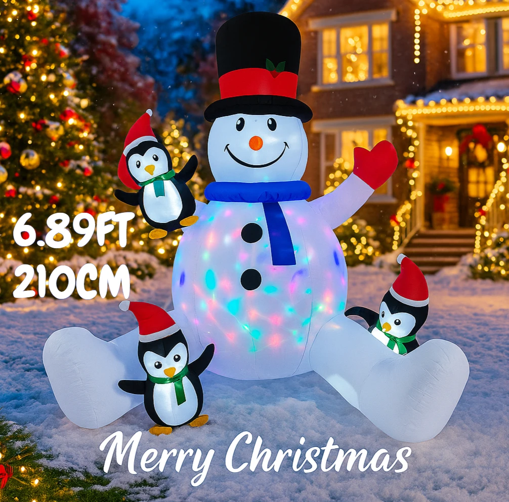 6.89FT Inflatable Snowman Hat Penguin Set Toy LED Lit Festive Christmas Gifts Xmas Yard Decorations Christmas Decorations