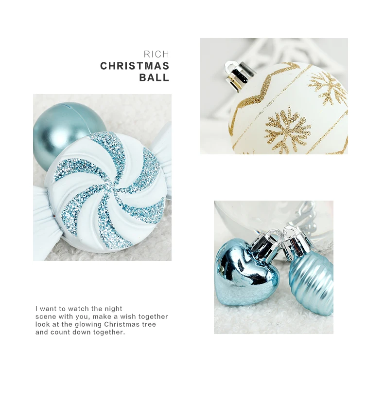 Includes a rich variety of Christmas balls in multiple sizes and finishes—perfect for creating a layered, professional tree look.