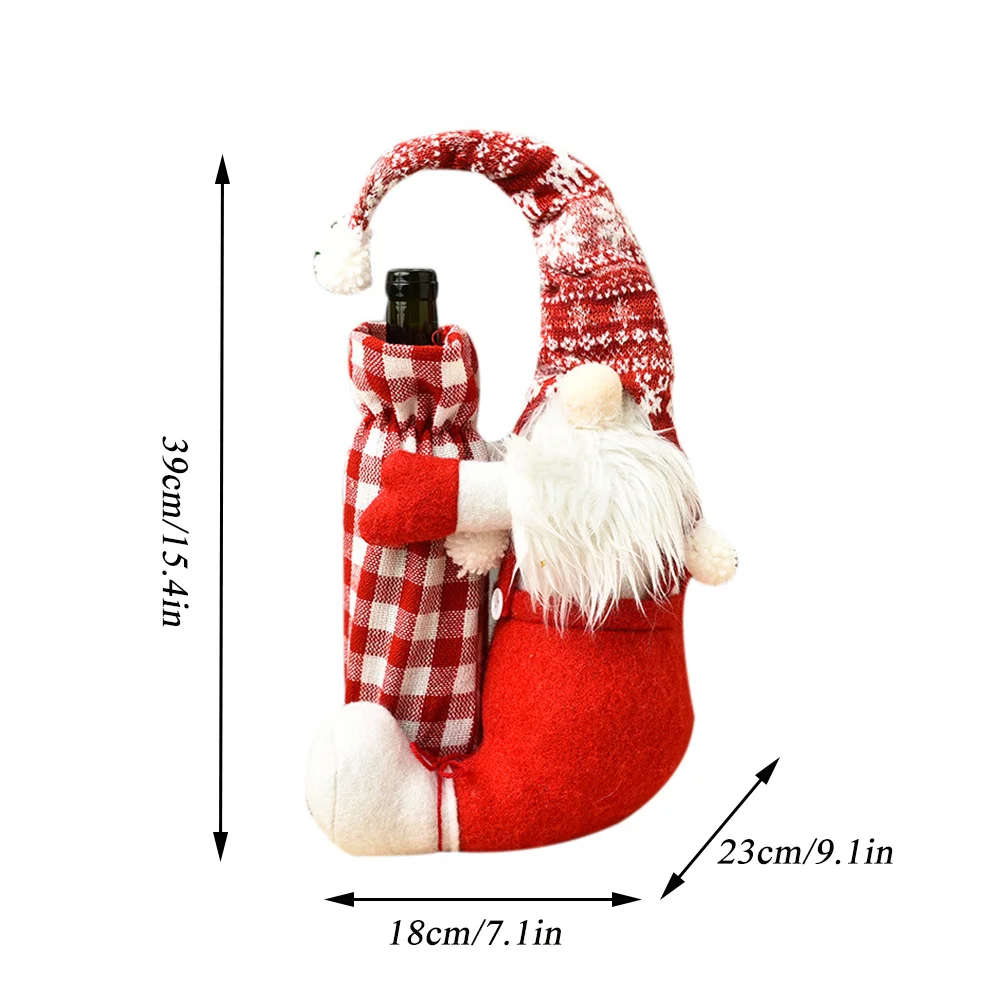 Christmas Wine Bottle Covers Cute Plaid Faceless Santa Doll Wine Decorative Cover Ornaments Xmas Party Decoration